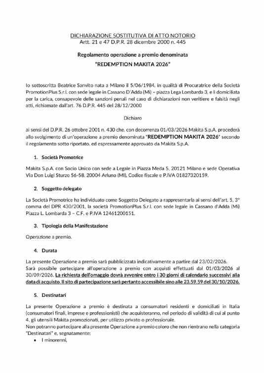 © Copyright 2023 Makita SpA - All Rights Reserved - Sede Legale: Piazza Meda, 5 - 20121 Milano - Reg. Impr. MI 01827320159 - R.E.A. MI 875476 - Capitale Sociale € 6.000.000 int. vers.