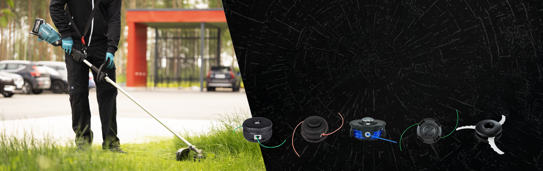 Le testine incluse con la macchina sono dimensionate in base alla potenza, garantendone la piena compatibilità. Le principali differenze tra le testine includono la compatibilità con lo spessore del filo e il metodo di caricamento. Tutte le testine e le bobine per decespugliatore Makita sono dotate del sistema Tap & Go che rilascia automaticamente il filo quando la testina viene battuta a terra.