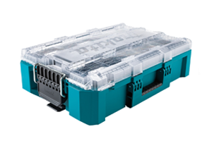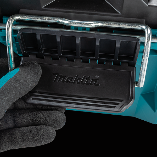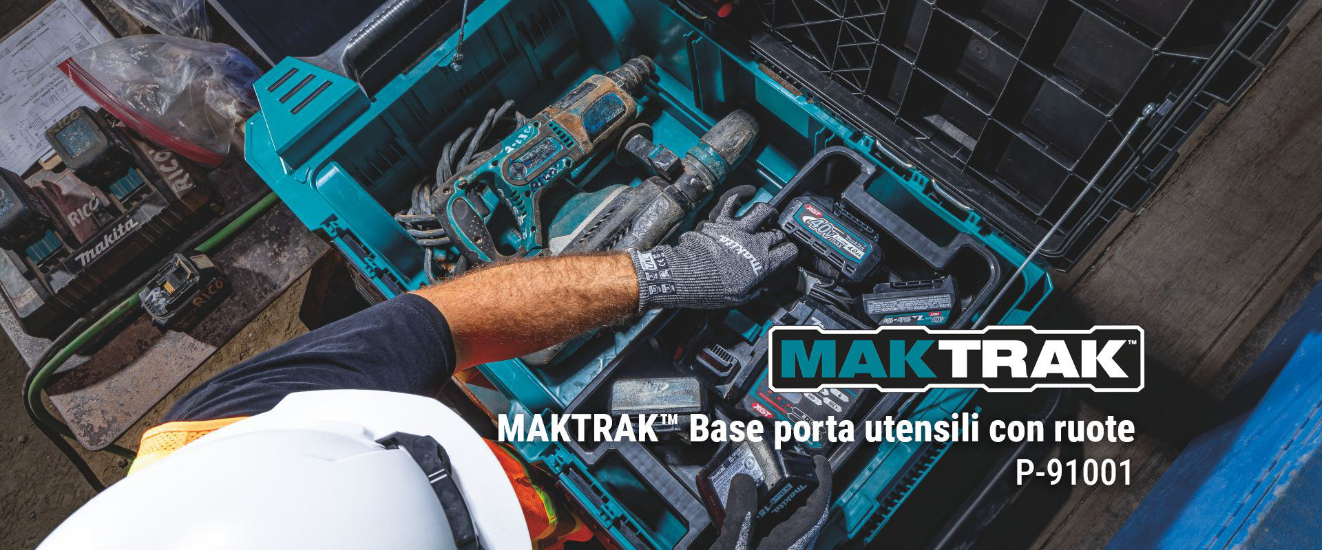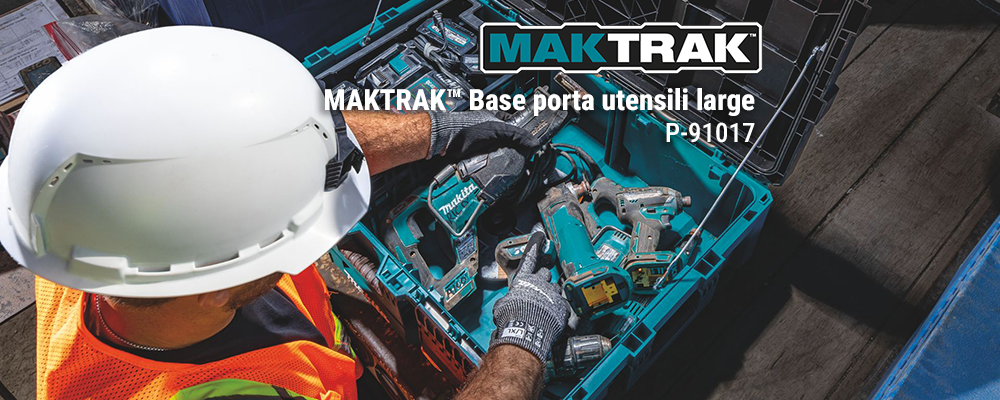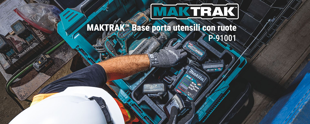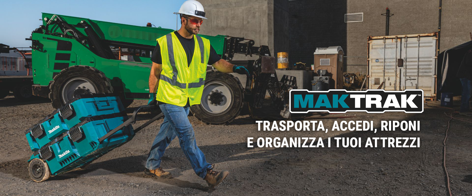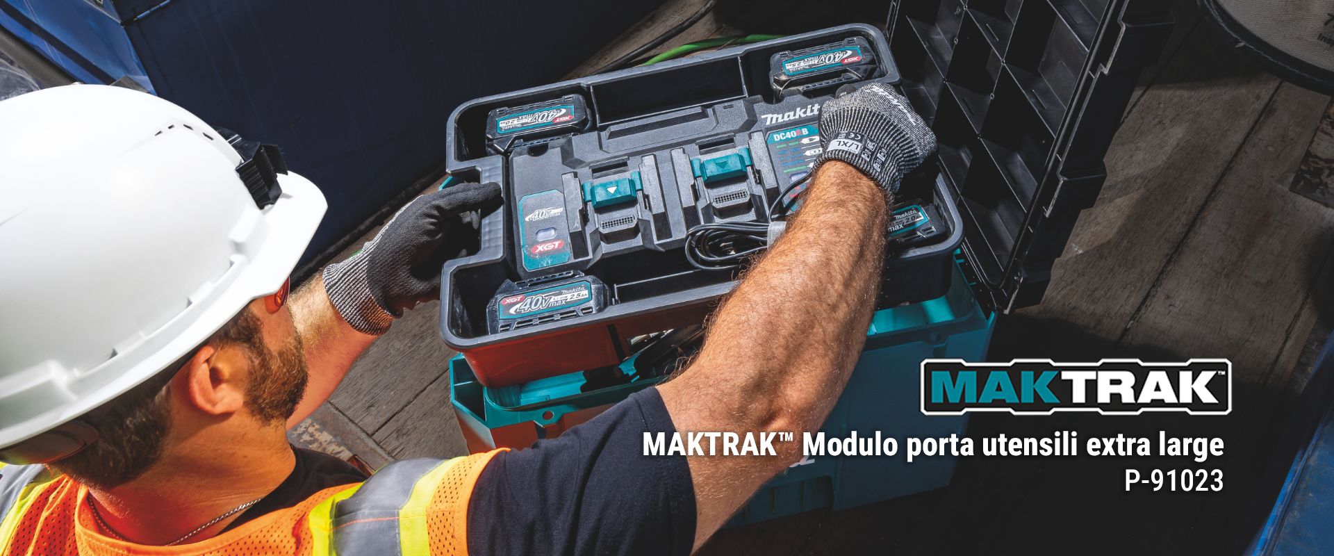 Makita MAKTRAK™ è la soluzione di stoccaggio modulare di nuova generazione per trasportare, accedere, riporre e organizzare utensili, accessori e attrezzature da cantiere. L'esclusivo sistema Trak Mount Lid di MAKTRAK, con sgancio a scatto con una sola mano, consente un facile impilamento da entrambe le direzioni. I fermi di bloccaggio, combinati con l'integrazione del coperchio e della valigetta, garantiscono un'eccellente tenuta contro gli agenti atmosferici.