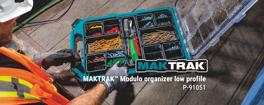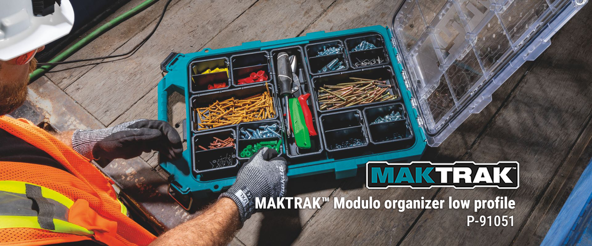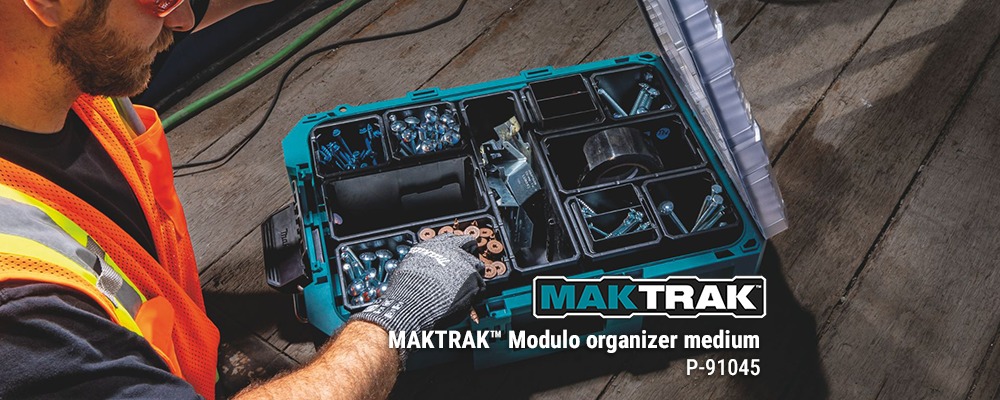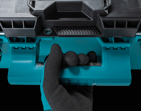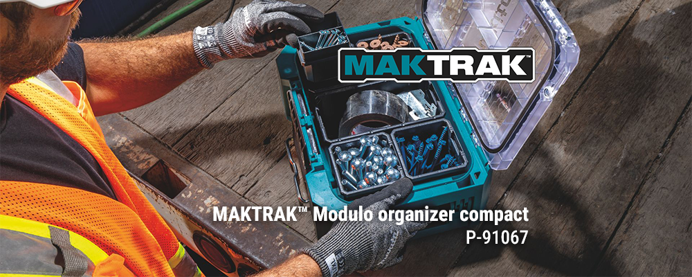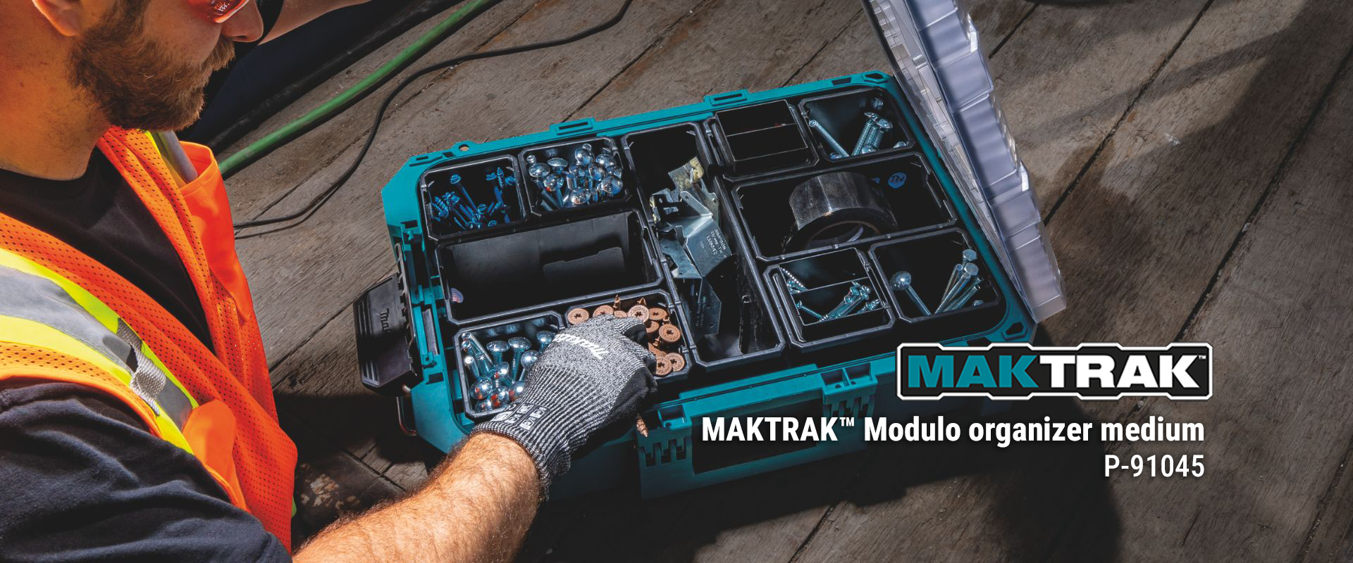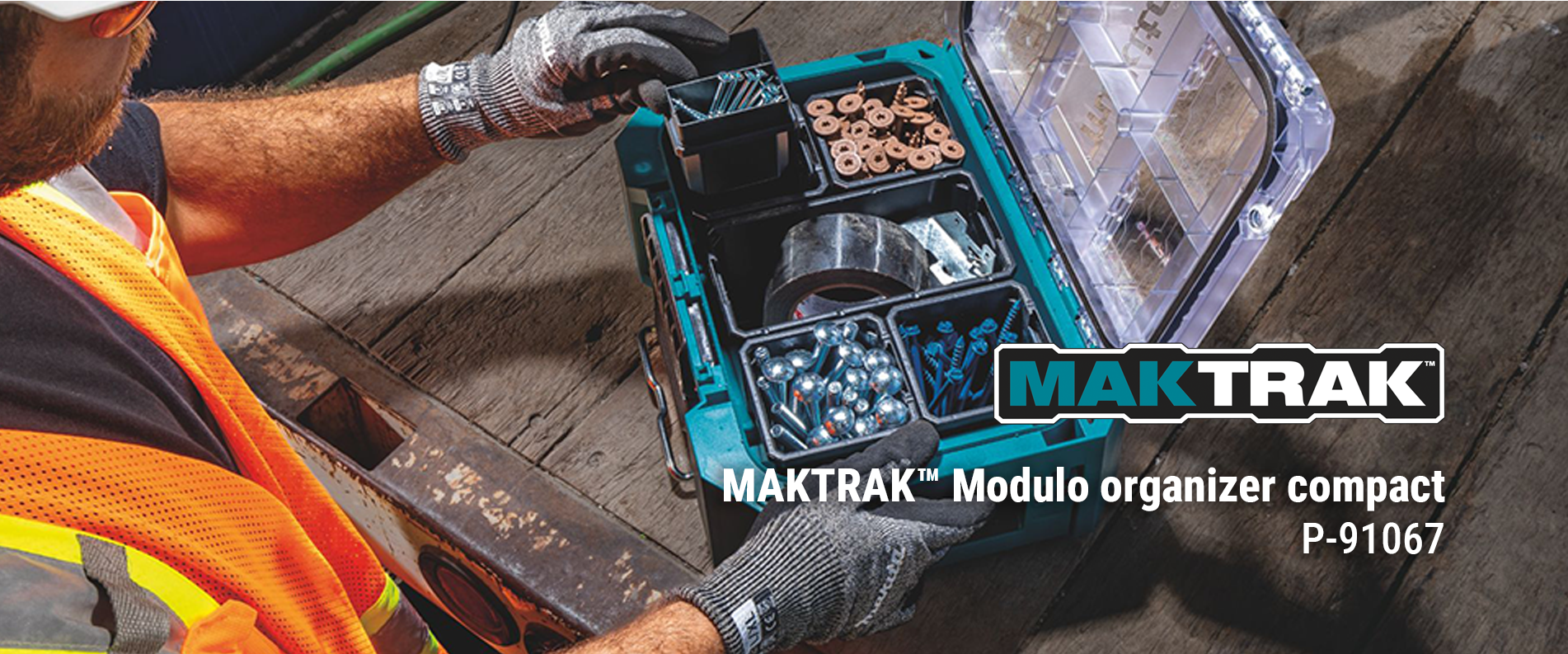 Makita MAKTRAK™ è la soluzione di stoccaggio modulare di nuova generazione per trasportare, accedere, riporre e organizzare utensili, accessori e attrezzature da cantiere. L'esclusivo sistema Trak Mount Lid di MAKTRAK, con sgancio a scatto con una sola mano, consente un facile impilamento da entrambe le direzioni. I fermi di bloccaggio, combinati con l'integrazione del coperchio e della valigetta, garantiscono un'eccellente tenuta contro gli agenti atmosferici.
