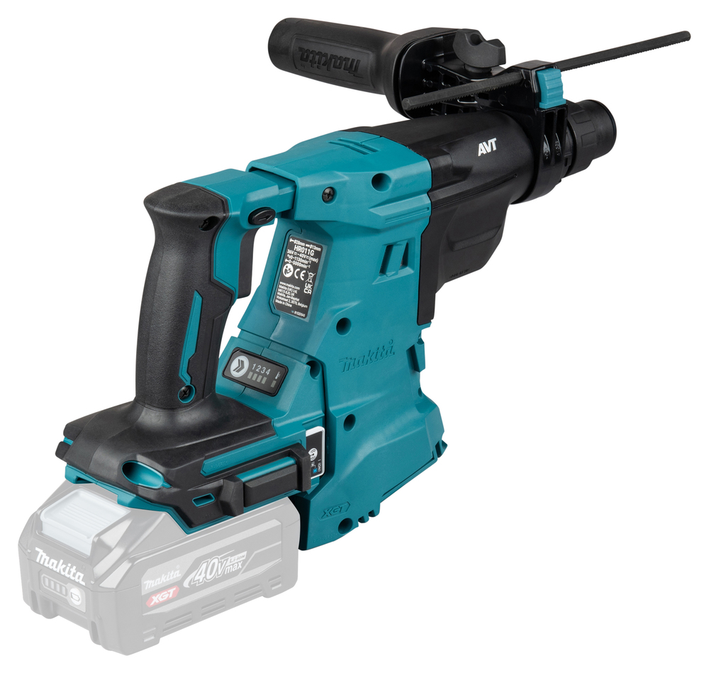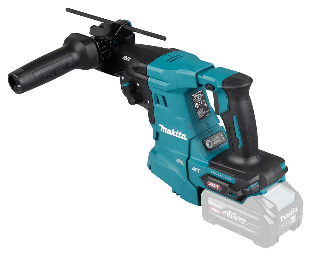 HR012G di Makita è un martello combinato professionale SDS-Plus da 28 mm alimentato da batteria 40Vmax XGT agli ioni di litio, progettato per offrire potenza, precisione e massima affidabilità nelle applicazioni più impegnative.Con un’energia del colpo di 3,3 Joule, velocità a vuoto fino a 1.130 giri/min e frequenza di percussione fino a 5.000 colpi/min, garantisce prestazioni elevate in foratura e scalpellatura. Nonostante la potenza, mantiene una struttura compatta e ben bilanciata, anche con sistema di aspirazione montato.
