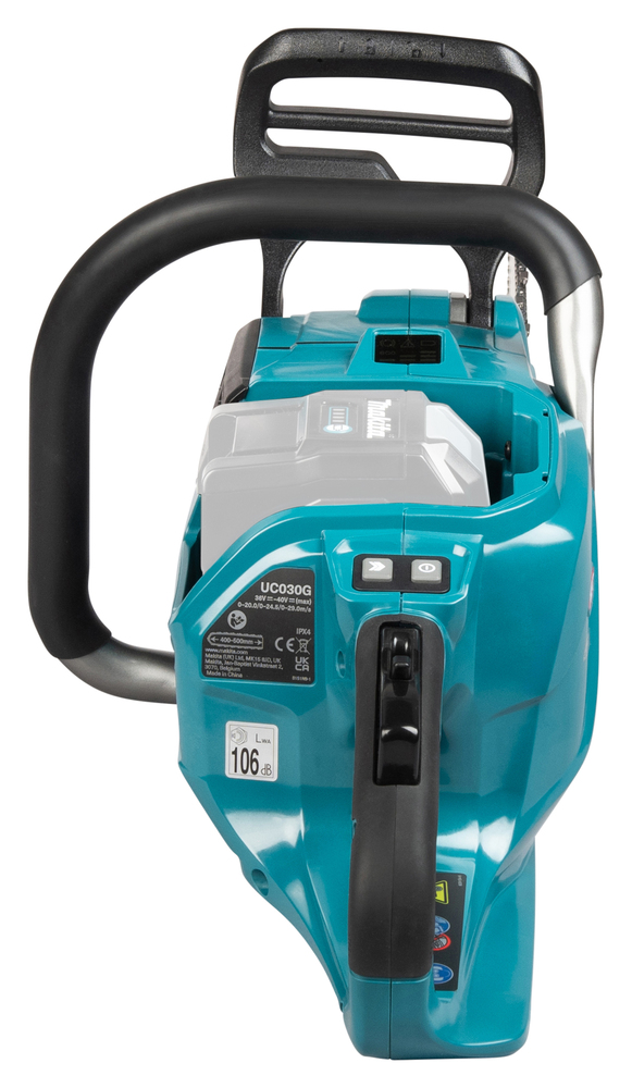 La UC030G rappresenta la nuova generazione di motoseghe a batteria, capace di offrire prestazioni paragonabili – e spesso superiori – a quelle di una motosega a scoppio da 50 cc quando utilizzata con la batteria ad alta potenza BL4080H. Basata sulla piattaforma 40Vmax XGT, garantisce tagli rapidi, fluidi e costanti su tronchi fino a 400 mm di diametro, assicurando velocità, precisione e massima produttività senza compromessi.Grazie alla rapida accelerazione del motore brushless in risposta all’interruttore, l’UC030G si distingue per la continuità di lavoro in operazioni di abbattimento e sezionamento. Le tre velocità selezionabili (ECO, Medium, High), abbinate al controllo elettronico variabile con memoria della modalità, permettono di adattare la potenza ad ogni esigenza. In caso di carico eccessivo, la catena rallenta automaticamente per facilitare la regolazione della pressione e riprende immediatamente quando il carico viene rilasciato.