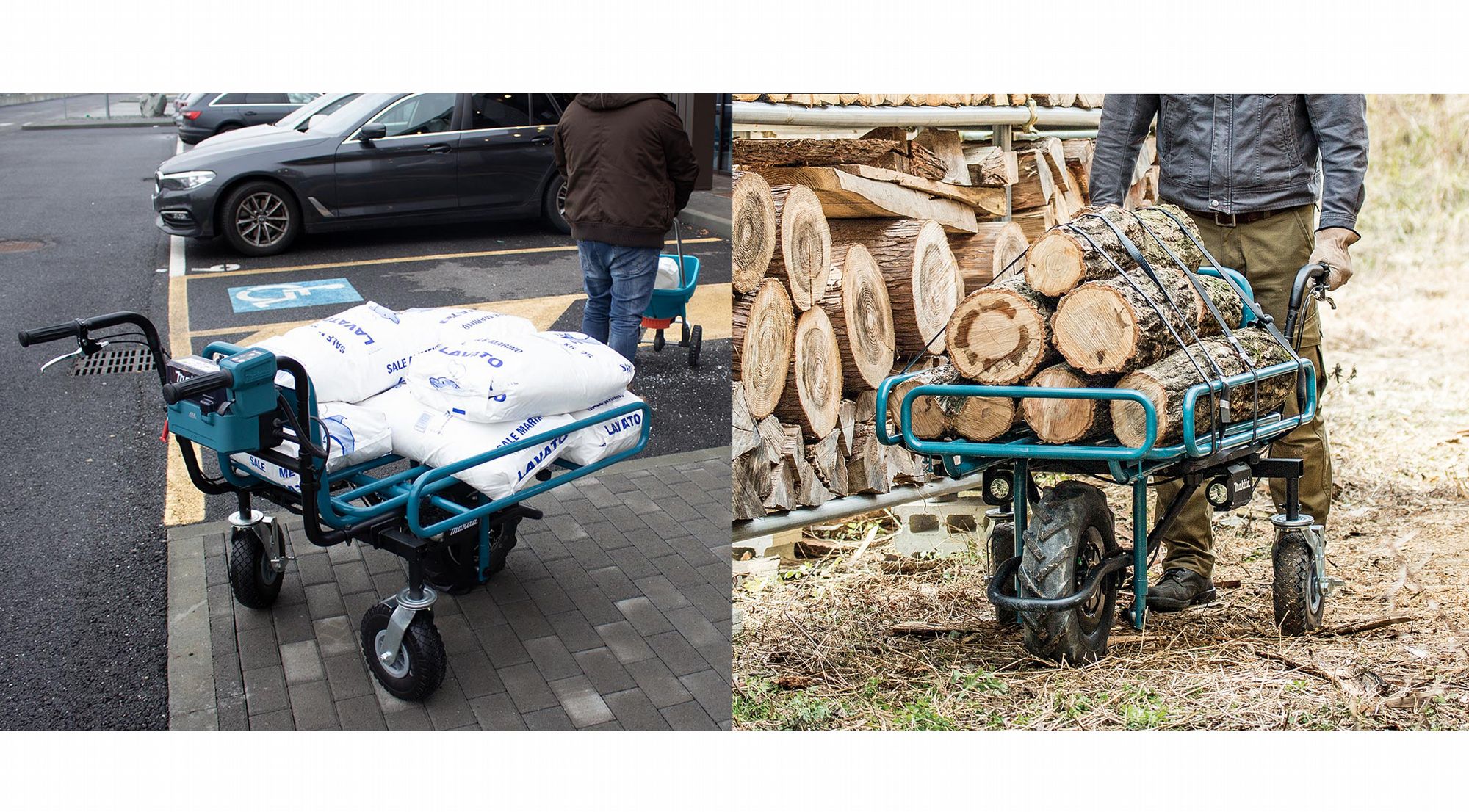Non a caso Makita ha pensato anche alla necessità di rimozione e trasporto della neve e di altri materiali che possono essere accumulati dalla spazzola in gomma, mettendo a punto la carriola LXT DCU180Z alimentata a batteria 18V con portata massima di 130 kg e in grado di percorrere 3,5 km con una singola batteria da 6,0 Ah e fino a 7 km con due batterie applicabili in serie.