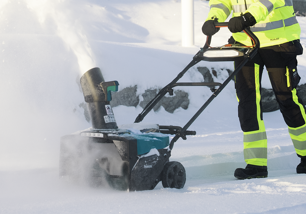 Semplifica la manutenzione invernale con la turbina spazzaneve a batteria SN001G di Makita, alimentata da una batteria XGT® da 40Vmax. Questo modello a spinta offre un funzionamento senza cavi, una rumorosità ridotta e un utilizzo ergonomico e senza sforzo, garantendo al contempo una pulizia efficiente delle superfici innevate. Con una larghezza di sgombero di 530 mm, comandi di scarico regolabili e una gittata fino a 10 m, SN001G gestisce la neve fresca in modo rapido ed efficace. Il suo design compatto, l'illuminazione a LED e la resistente struttura protetta in XPT la rendono una soluzione pratica per giardini residenziali, cottage e manutenzione professionale di proprietà.