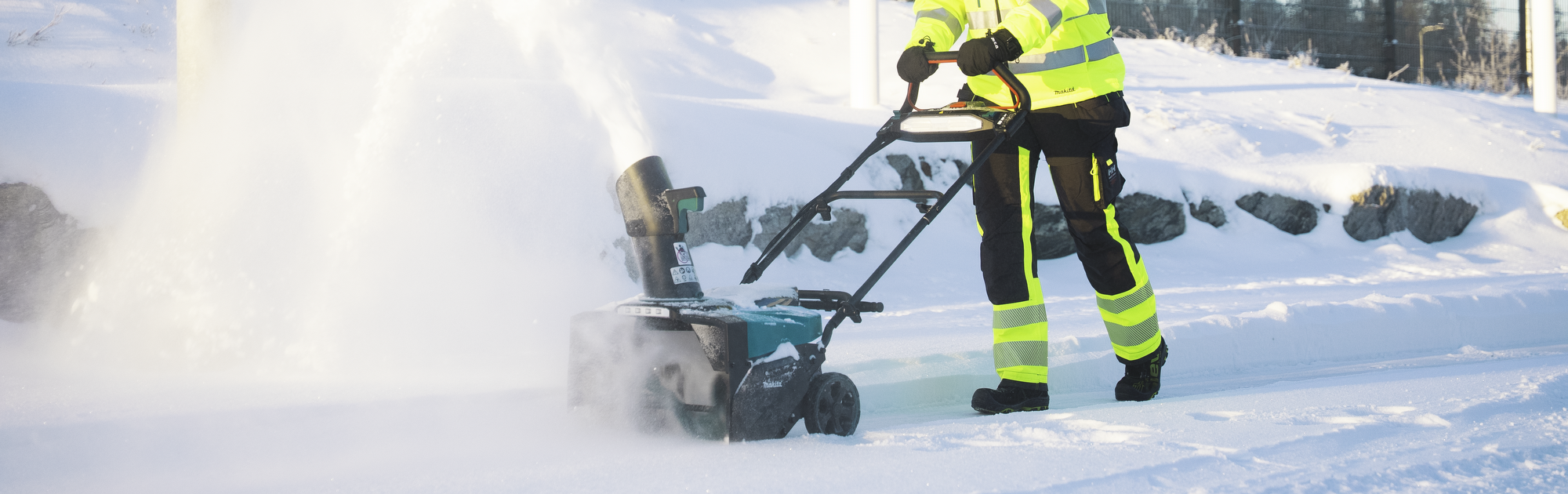 Il controllo continuo della velocità di rotazione ottimizza le prestazioni in base alle diverse condizioni della neve. Il controllo elettronico dello scarico a 180° montato sulla maniglia e il deflettore manuale garantiscono un posizionamento preciso del getto, mentre le impugnature morbide e l'illuminazione a LED migliorano il comfort e la visibilità.
